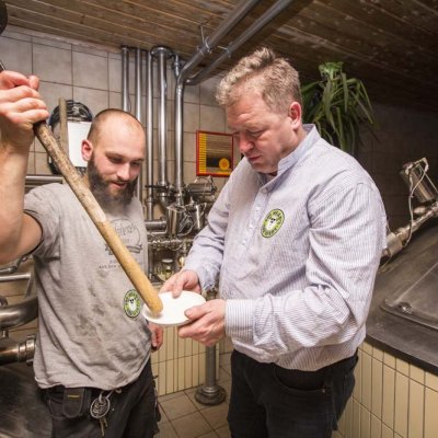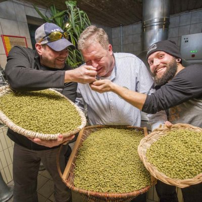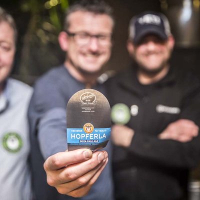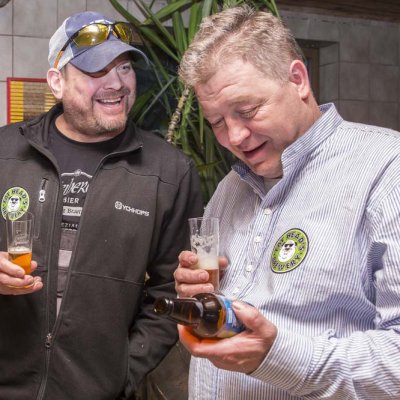 Franken, Amerika und der Hopfen. Die Brauereien Kundmüller aus Weiher und Fat Head’s aus Ohio haben bereits mit ihrem gemeinsamen Imperial IPA gezeigt, dass das gut zusammen passt. Jetzt flog Braumeister Matt Cole erneut ein und braute zusammen mit Roland Kundmüller und seinem Team ein Bier - das Hopferla, ein West Coast Style India Pale Ale mit den sieben Hopfensorten Simcoe, Warrior, Centennial, Mosaic, Equinox, Citra und Chinook sowie klassischen und Karamell-Malzen.