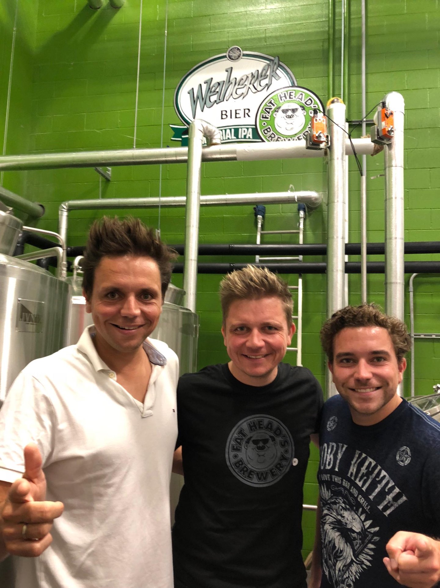 Denn: An der Wand der neuen Versuchsbrauerei der Fat Heads Brewery hat Inhaber Matt Cole das Weiherer Logo als Zeichen der Freundschaft zu Oswald und Roland Kundmüller anbringen lassen. Da haben es sich die Dorfrocker nicht nehmen lassen, gleich ein Selfie zu machen und es in die Heimat zu schicken. Grüße aus Amerika sozusagen...