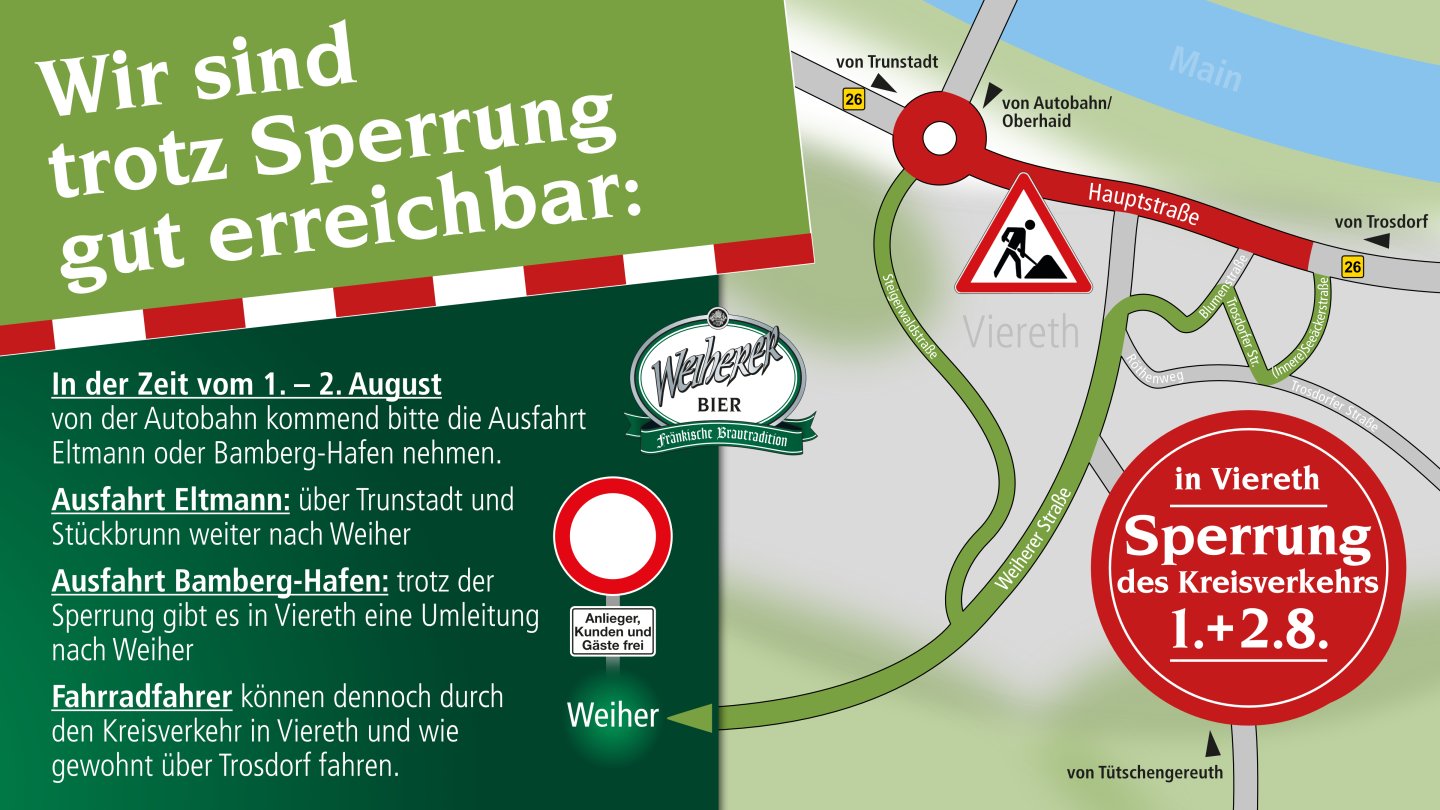Über Ausfahrt Viereth sind wir am 1. und 2. August NICHT erreichbar!