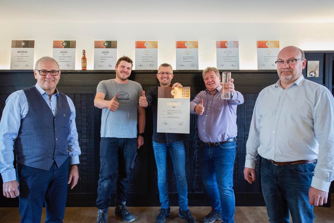 L'anno 2020 passa alla storia. Nonostante tutti i guai e le preoccupazioni dovuti al virus Corona, siamo lieti di annunciare messaggi positivi come questo: gli amministratori delegati Roland e Oswald Kundmüller insieme al mastro birraio Michael Popp sono lieti di ricevere uno dei premi più importanti nel mondo (della birra) . All'inizio di quest'anno sono stati nominati Birrificio artigianale dell’anno, Craft Brewer of the Year. E ora, il loro "Weiherer / Cervejaria Bamberg Rauchbock" ha vinto una medaglia di bronzo nella categoria "birra dal fumo forte" all'European Beer Star. Ciò significa un totale di 21 medaglie per il birrificio Kundmüller e quindi sono tra i birrifici di maggior successo che prendono parte a questa competizione.