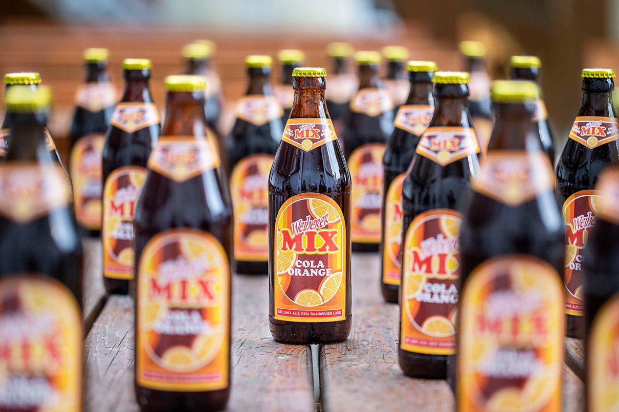 Fresco, fruttato, sempre gustoso. Questo è il nuovo Weiherer Mix Cola Orange - il Cola Mix della regione di Bamberg.