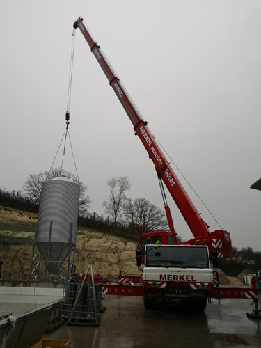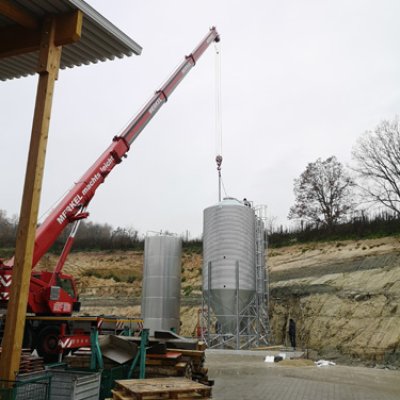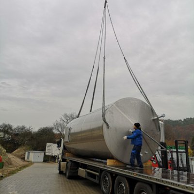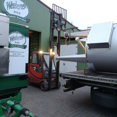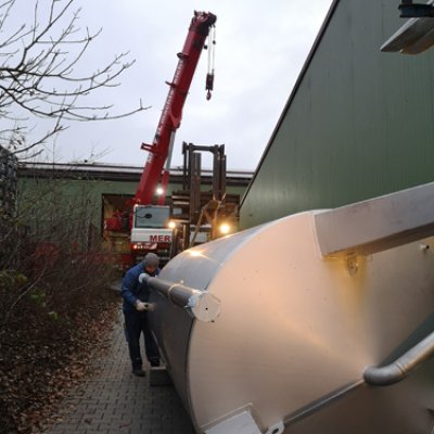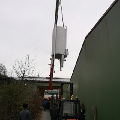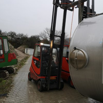 Va avanti all'infinito. I nuovi silos di malto, ciascuno con una capacità di 26 tonnellate, hanno dovuto essere avvitati insieme per un totale di quattro giorni. Inoltre, sono stati consegnati il nuovo serbatoio dell'acqua dolce (60 HL) e dell'acqua calda (350 HL). Il serbatoio dell'acqua dolce è stato inizialmente installato tra la stazione di rifornimento e la sala logistica. La gru ha quindi dovuto spostarsi nel punto esatto in cui in seguito sarebbe stato installato il birrificio. Fu quindi posizionato con precisione e poi imbullonato alla fondazione. Lo stesso è stato poi fatto con i silos di malto. Scorri la galleria di immagini.