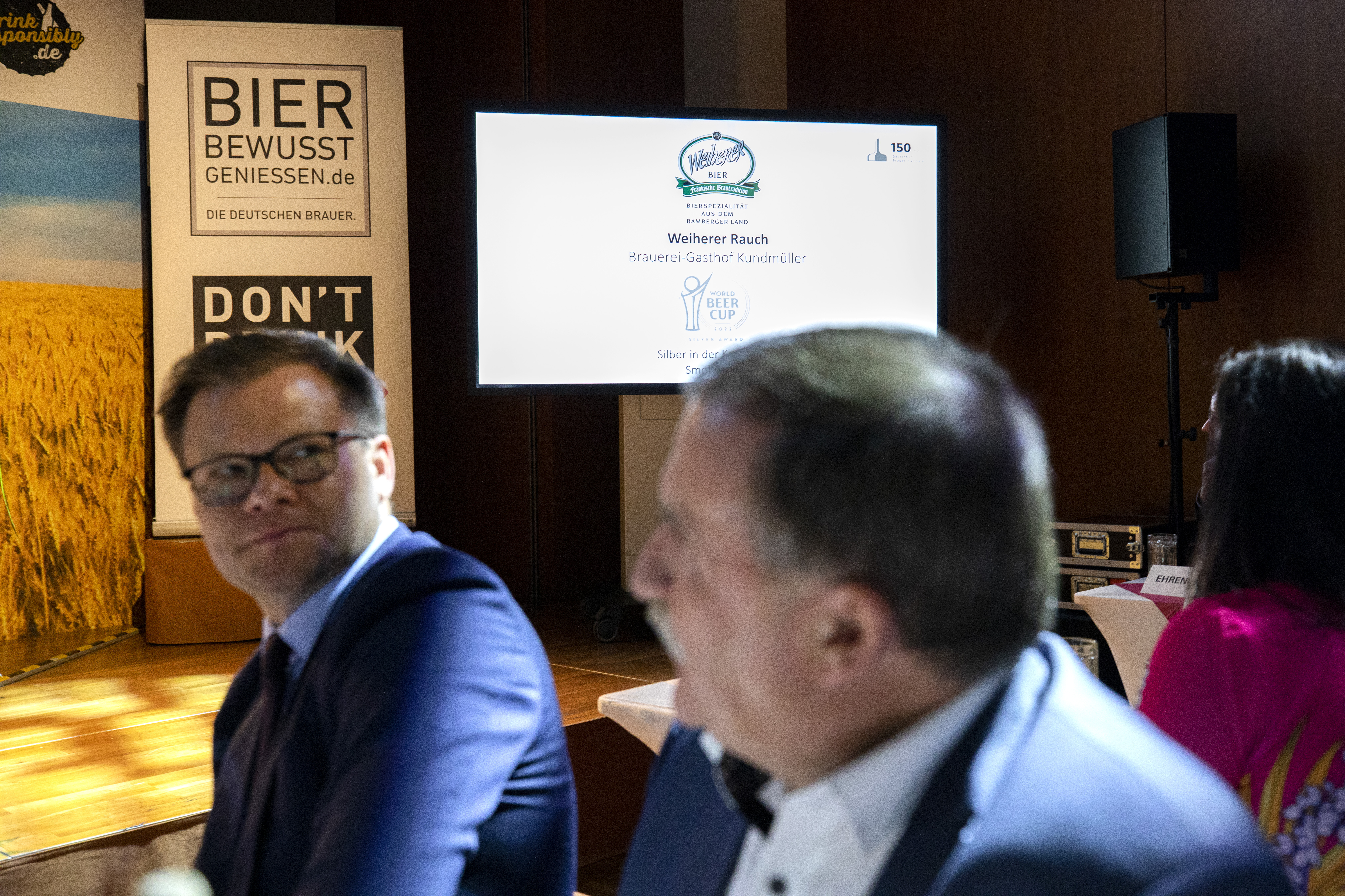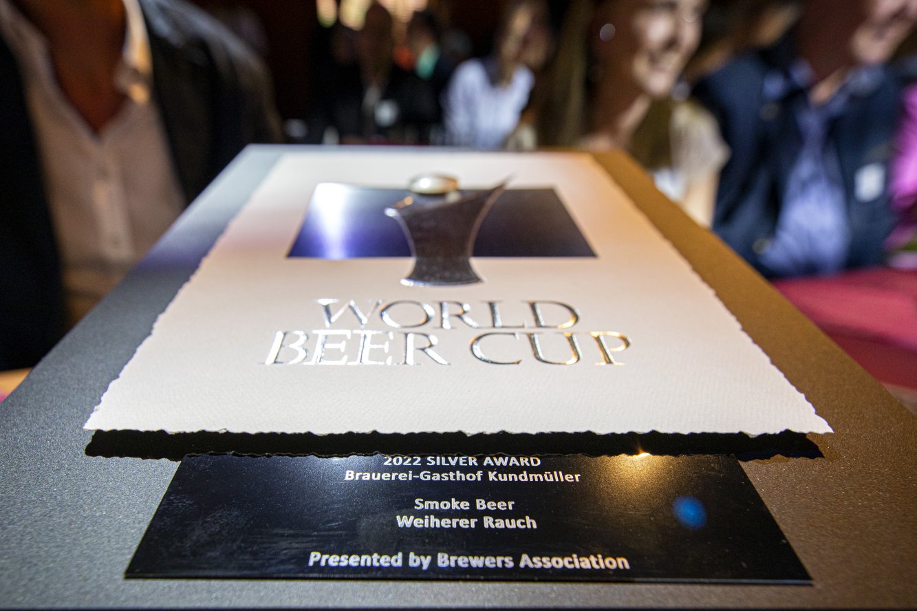 Argento alla gara di birra più dura del mondo. Questo rende il team Weiher particolarmente orgoglioso. Alla fine di giugno, Oswald e Roland Kundmüller hanno ricevuto il premio World Beer Cup per Weiherer Rauch nella capitale Berlino. Oltre 10.000 birre provenienti da circa 2.500 birrifici in 57 paesi hanno preso parte alla più grande e importante competizione di birra del mondo. Un totale di 103 diversi stili di birra hanno ricevuto premi, con 100 birre in competizione per il premio nella sola categoria Rauch. C'erano solo undici medaglie tedesche, inclusa quella d'argento per Weiherer Rauch, e questo rende i dipendenti incredibilmente felici. Un grande onore così poco prima dell'imminente festival del birrificio.