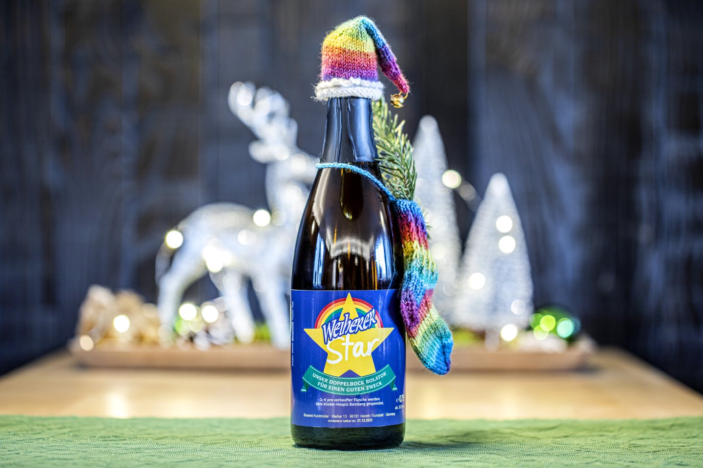 In occasione dell'apertura della finestra dell'Avvento a Weiher, giovedì 15 dicembre presenteremo per la prima volta la birra natalizia Weiherer Star. 3 euro a bottiglia andranno all'ospizio dei bambini di Bamberg, come ringraziamento e apprezzamento per tutti gli angeli di questra terra. A questo scopo, quest'anno abbiamo imbottigliato il Weiherer Rolator in una bottiglia die champagne molto speciale.