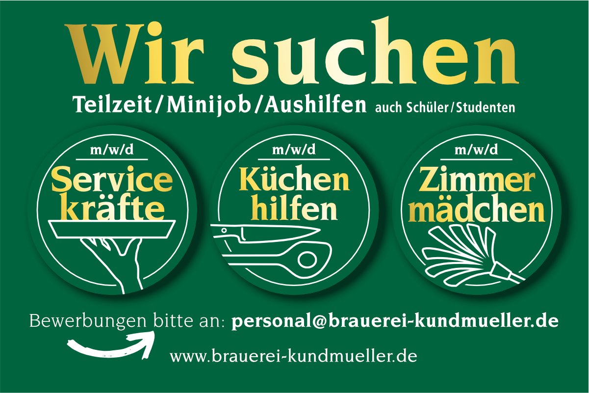 Du bist auf der Suche nach einer neuen Herausforderung? Oder du willst dir etwas dazu verdienen? Dann bist du bei uns genau richtig! Werde Teil vom Weiherer Bier-Team im Brauerei-Gasthof Kundmüller. Wir suchen derzeit: Köche, Servicekräfte, Zimmermädchen und Küchenhilfen.