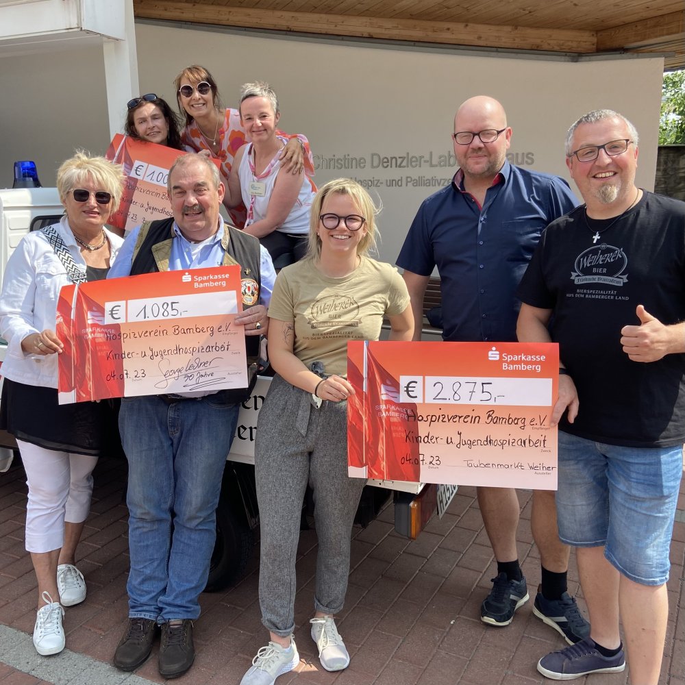 Siamo molto felici di aver potuto sostenere ancora una volta il lavoro dell'ospizio per bambini e giovani di Bamberg! Il 4 giugno si è tenuta la consegna di un assegno per ben 3 raccolte fondi. Andreas Nüsslein e il suo team di Taubenmarkt hanno raccolto un totale di 2.875 EUR durante i due eventi presso il nostro birrificio-ristorante. Georg Lechner, l'antico birraio, ha festeggiato il suo 70º compleanno da noi nel mese di maggio. Invece di regali, ha chiesto donazioni per l'ospizio per bambini e incredibilmente sono stati raccolti 1.085 EUR. E infine, il 1º giugno, abbiamo donato 1.000 EUR per il primo Toy Run a Bamberg. Siamo davvero felici di poter contribuire a una causa così importante. Caro team dell'associazione ospizio, grazie di cuore per il vostro straordinario lavoro e impegno! Dopo la consegna dell'assegno, abbiamo fatto un'emozionante visita alle nuove strutture e siamo rimasti molto commossi. Se anche voi volete donare, date un'occhiata qui: https://hospizverein-bamberg.de/unterstuetzung/index.html