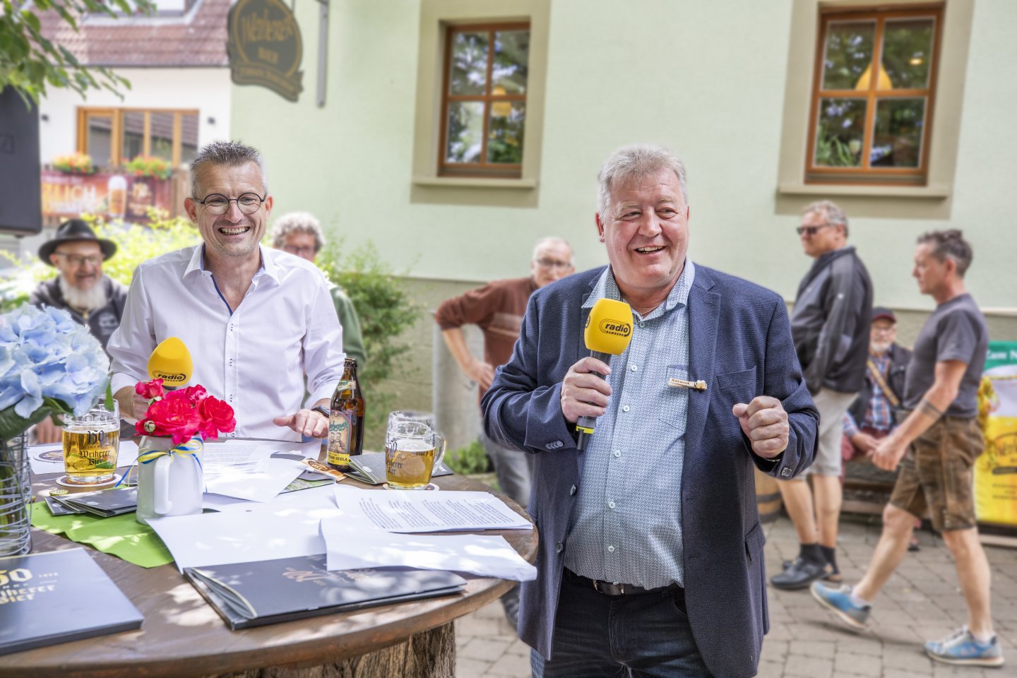 BU: Oswald und Roland Kundmüller (v.l.) freuen sich auf viele Veranstaltungen und tolle Gäste im Jubiläumsjahr „150 Jahre Weiherer Bier“.