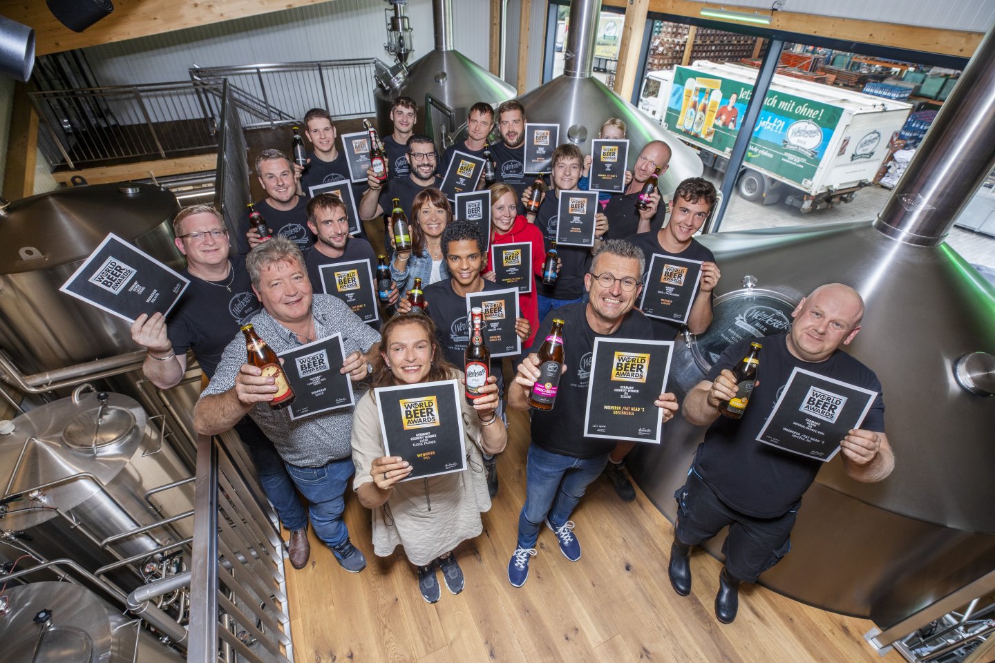 BU: Das komplette Weiherer Brauerei Team freut sich über sensationelle 16 (!) Auszeichnungen beim World Beer Award 2023.