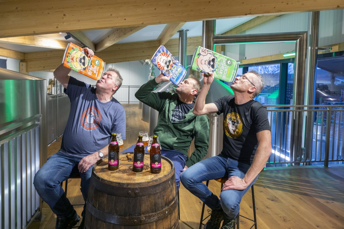 BU: Große Freude beim Brauen und Verkosten des dritten gemeinsamen Bieres hatten: (v.l.) Roland Kundmüller, Matt Cole und Oswald Kundmüller.