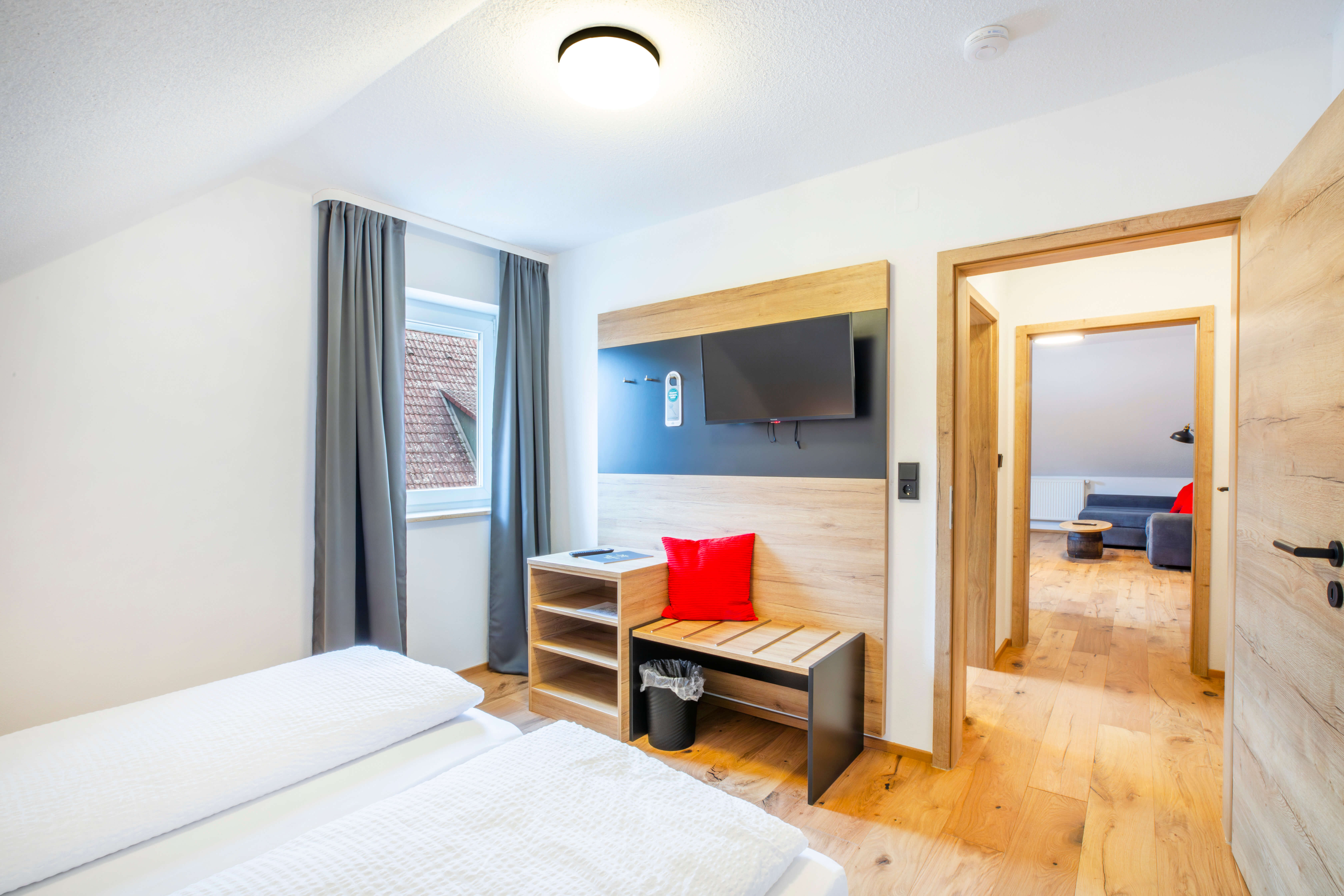 Familienzimmer bis zu 4 Personenmit Dusche/WC/TVDie Preise gelten für eine Belegung mit 3 Personen. Aufpreis 4. Person: 12 EUR pro Nacht