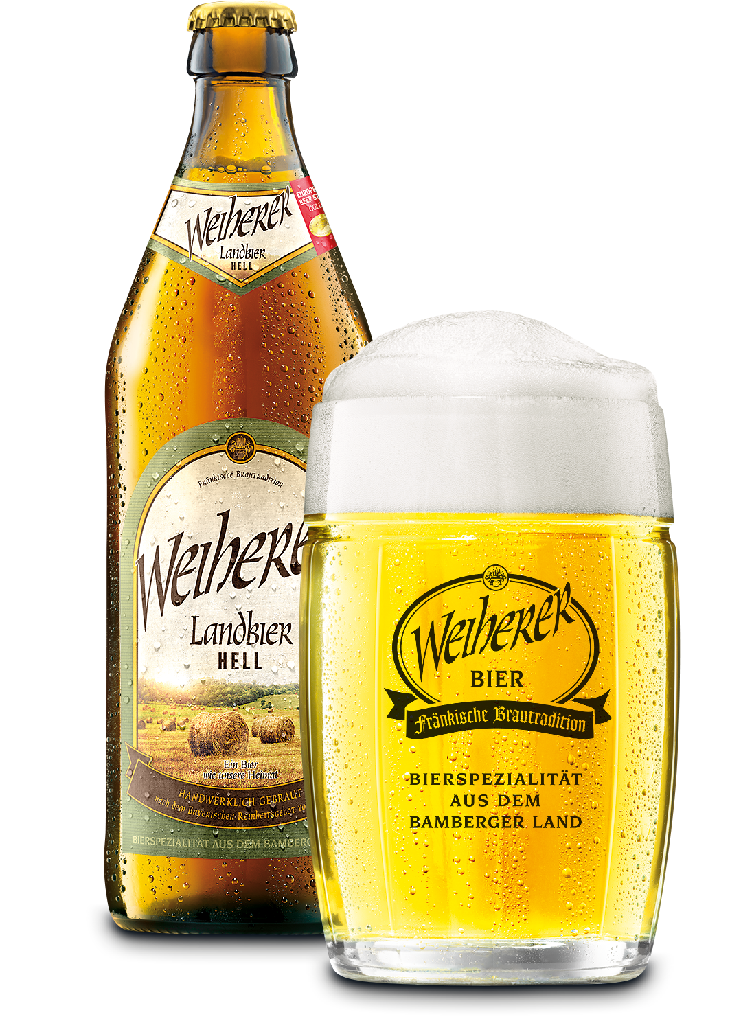 Una birra come la nostra patria. Dorata come il sole, dolce come le nostre colline, pregiata come i nostri cereali, prodotta con le migliori materie prime della Franconia ed esclusivamente grazie ad energie rinnovabili. La Weiherer Landbier non è solo ben digeribile: si abbina anche perfettamente alle specialità casalinghe della locanda del nostro birrificio.